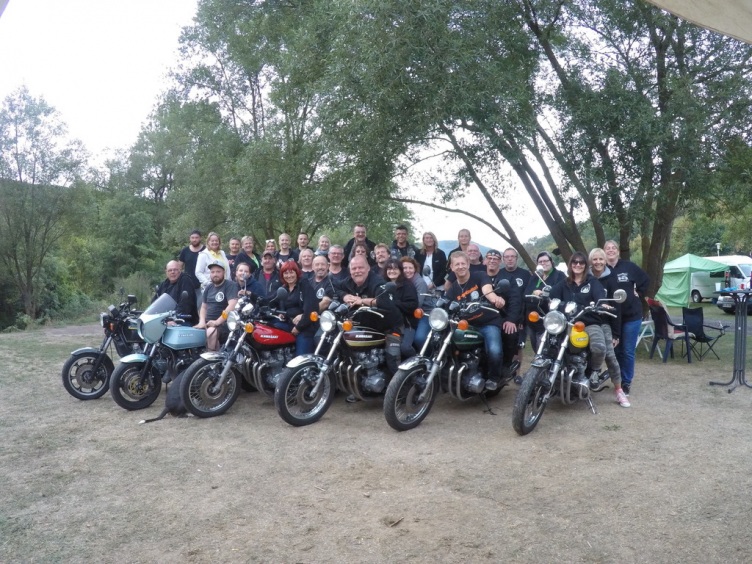 Eine kleine Gruppe Motorradfahrer, die gerne zusammen fahren und feiern.